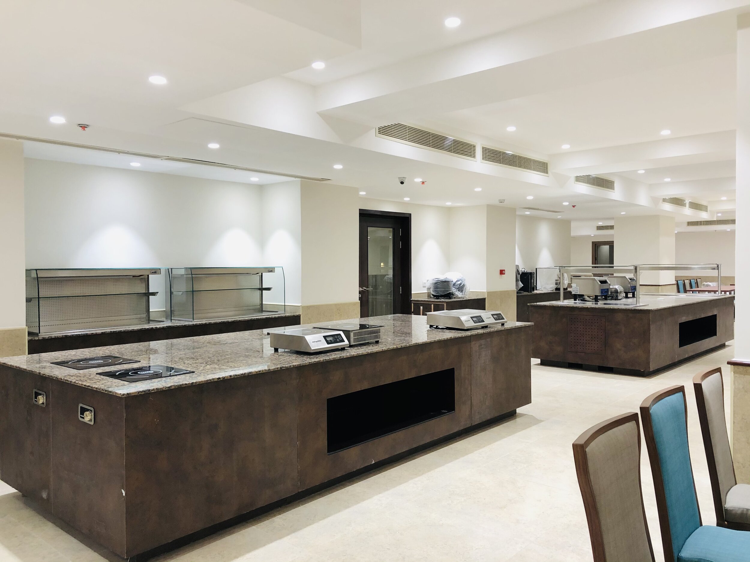 With partial opening of 110 rooms (340 beds) from the 2nd quarter of 2021, the new 14-story Al Qasr Residence provides zaireen with modern comfort in the Holy City of Karbala mere footsteps to bain-al-haramain. The extension of the shrine and sehen currently underway will mean that the haram precinct will begin almost at the door-step of the residence which is situated on Imam Hussain a.s. Bab-al-Qibla street. Khaimega is on a parallel street. Al Qasr Residence has a rooftop restaurant and several rooms with spectacular unobstructed views of the Holy Shrines and the surrounding area. All rooms in the 143 room (460 guest capacity) Al Qasr Residence will have en-suites and individual reverse-cycle air-conditioning. Every floor has a resident’s lounge with tea and coffee facilities. The beautiful Kashi tilework and other embellishments on the façade have been matched by the beautifully designed internal spaces of the property – providing a serene, aesthetically pleasing and spiritually uplifting experience for visitors and guests.